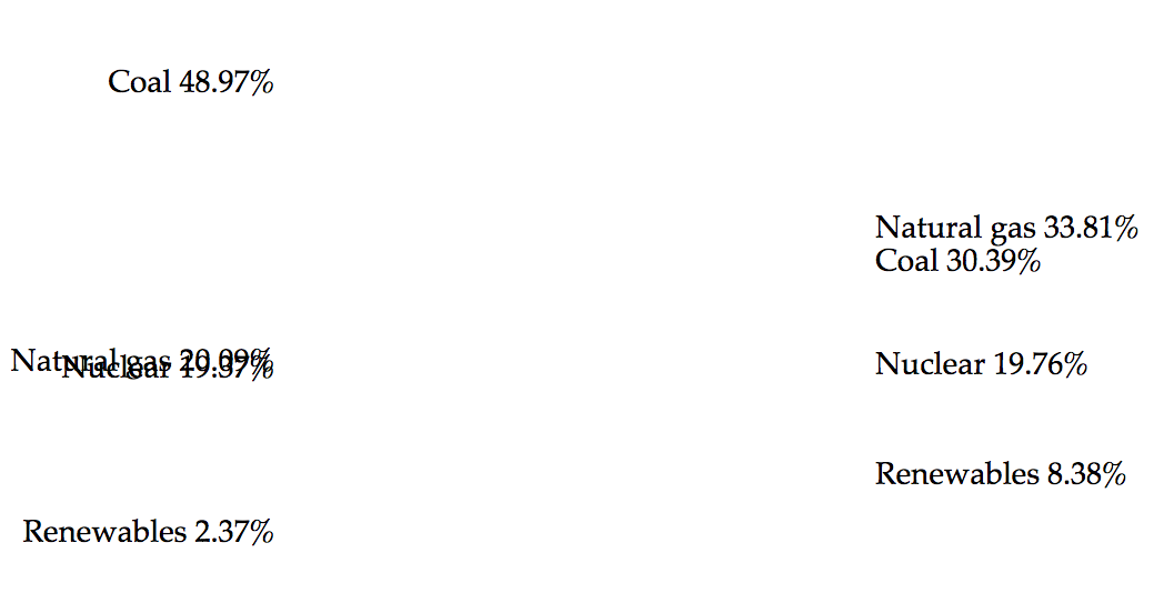 I downloaded energy generation data from 2005 to 2015 from the U. S. Energy Information Administration data browser, converted it to a Clojure hash map, and used it to create the visualization.